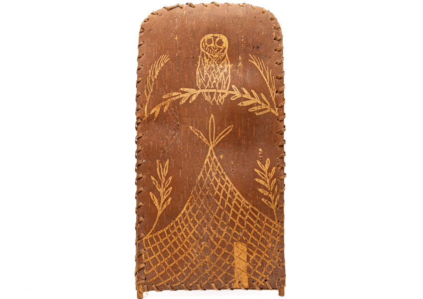 Tomah Joseph was an artist, guide and craftsman who sold his wares throughout eastern Maine and to the summer residents of Campobello Island. His main craft included birchbark items such as canoes, one of which he made for the Roosevelt family. It is said that he taught young Franklin Delano Roosevelt how to canoe. Tomah Joseph illustrated many of his tribes’ origin stories on the birch bark items he created and often used an owl as his trademark. He also worked as a canoe guide and together with other Passamaquoddy performed Indian dances for non-native spectators.
